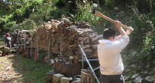 5月24日、大量の間伐材を法人のアトリエに運び込み、6月21日薪割りを実施しました。