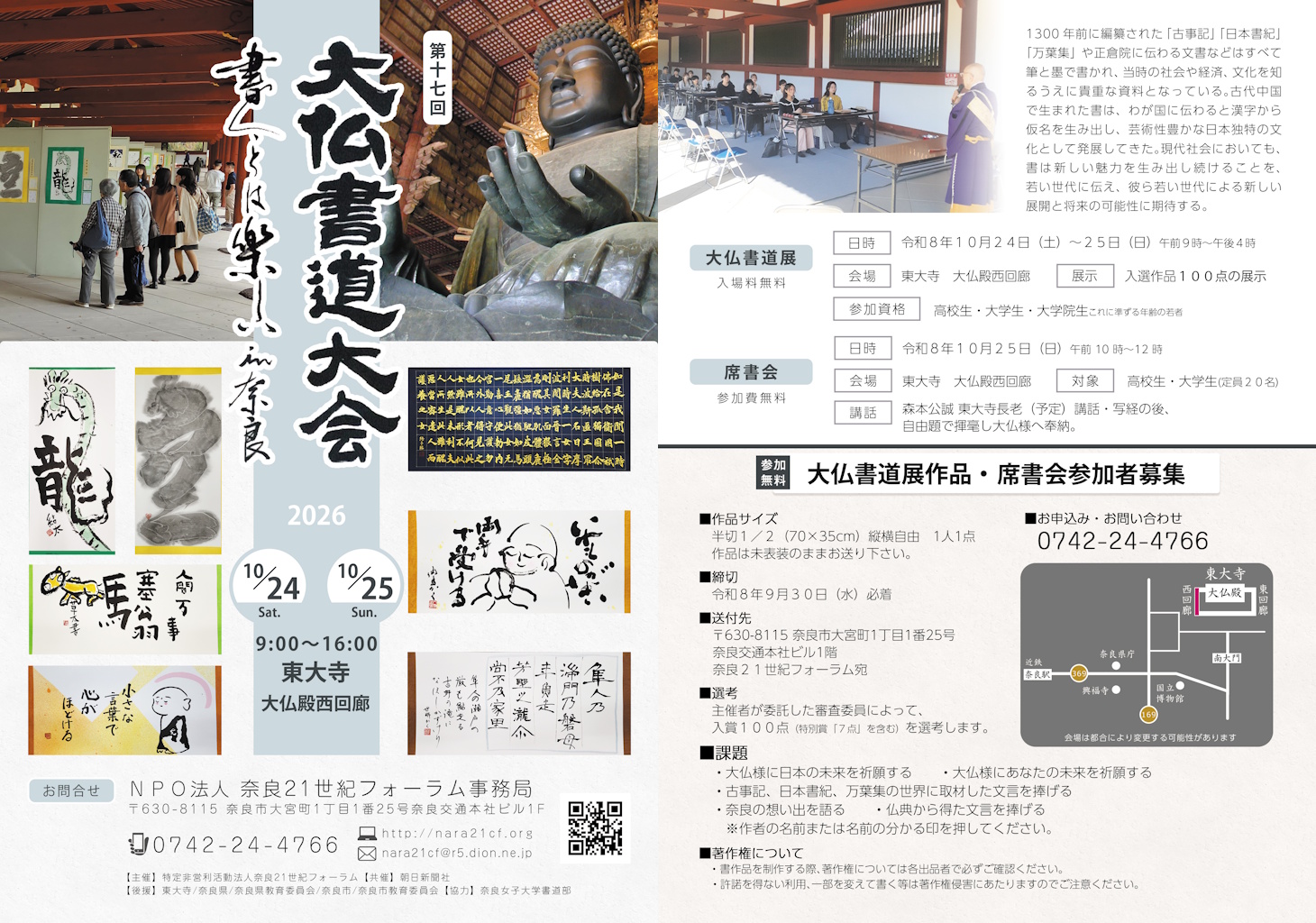 全国の高校生・大学生から送られてくる独創的な作品を拝見(審査)するのが楽しみです。展示期間中は、会場(大仏殿西回廊)に居ります。ご自由に ご観覧いただき、ご感想をお聞かせください。